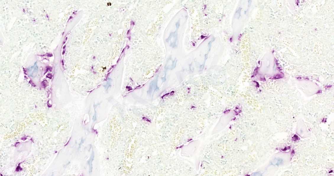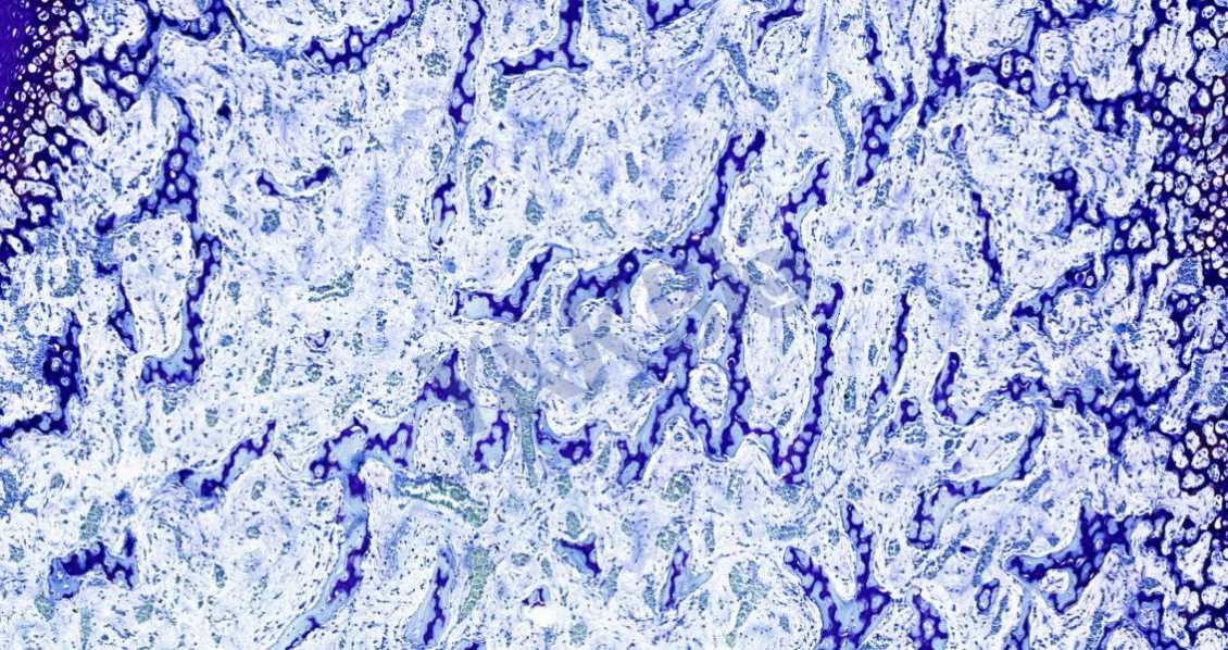 HE染色是组织学中基础、使用广泛的染色手段,相信大家对此都不陌生。HE染色可以区分一般的骨组织结构和细胞,但单一的HE染色并不能区分新生骨组织的数量、胶原以及其他细胞状态,大多数都需要配合其他染色技术共同观察骨愈合状态。特别的,现在都需要对新生组织进行量化研究,HE染色显然是不能满足要求的。