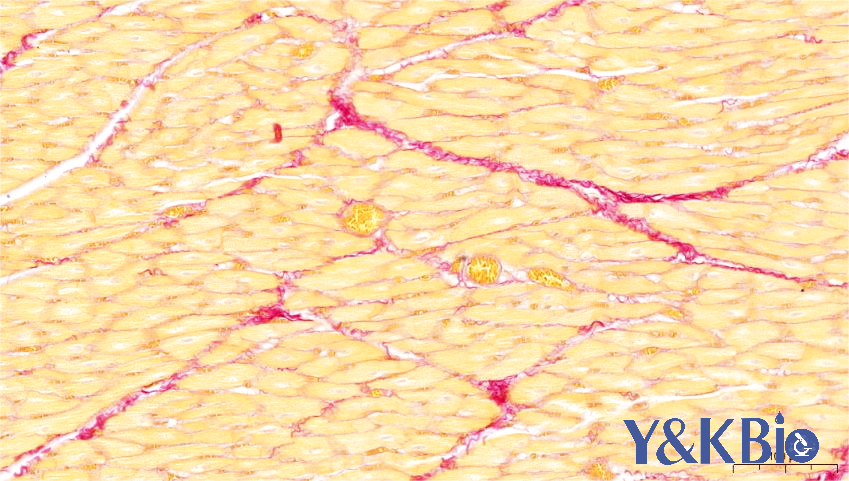 染色结果:胶原纤维红色,肌纤维和红细胞黄色