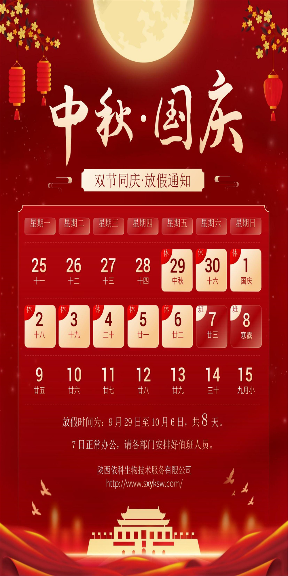 首页 > 新闻资讯 > 陕西依科双节同庆放假通知