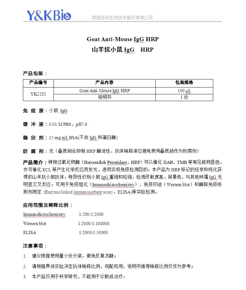 陕西Goat Anti-Mouse IgG HRP 山羊抗小鼠IgG (H+L) HRP
